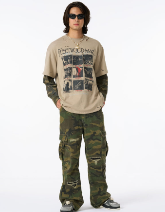 Whether it’s a loose-fit graphic tee, camo-inspired layers, or statement cargo pants, each item is built to turn heads and spark attention. This isn’t minimalism it’s maximum expression.